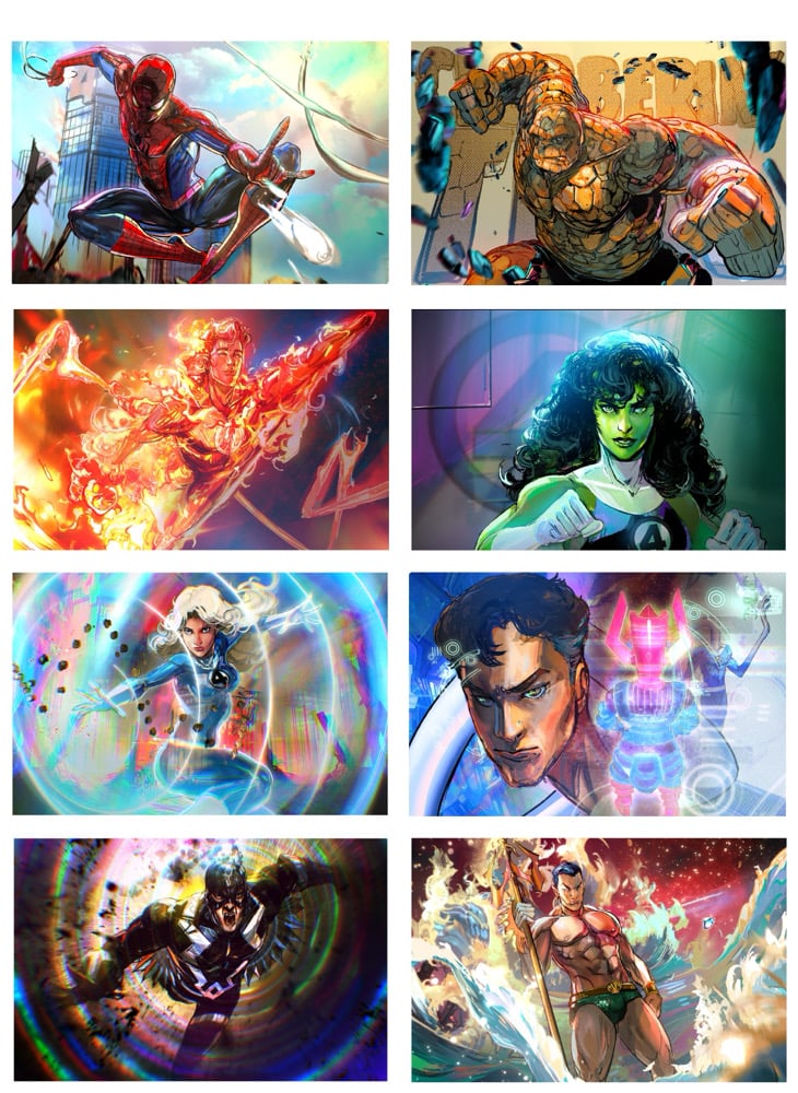 Ths fantastic four Series. Has 9 prints . All of the 9 prints will be hand signed by Peter Nguyen the artist. Each print measures out 6 by 9inches and together all 8 make a rainbow with a black and white.