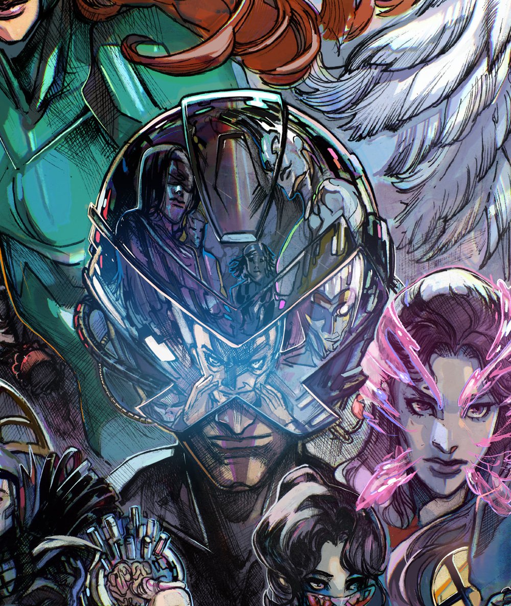 This piece will include one 12 by 18 print of every single x psychic that i could cram into piece of paper. The cut off 49 characters total including precogs .