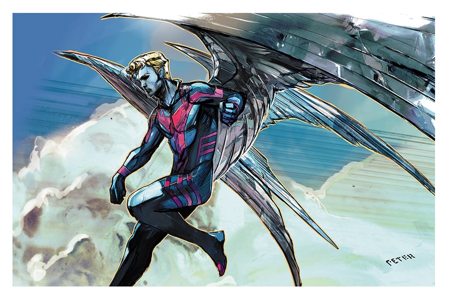 This product includes 8 mini print set of the original X-men the Animated Series with all the guest stars of the series. All of the 8 prints will be signed by Peter Nguyen the artist. Each print measures out 6 by 9 and together all 8 make a rainbow with a black and white.